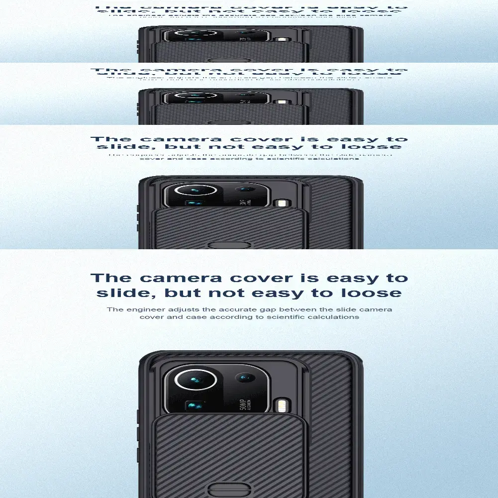 Nillkin CamShield is a perfect combination of classic design in a fashionable, yet highly protective phone case. It has a slidable covering for camera protection, which also helps protect your privacy. The case is made from environmentally friendly PC plastic, a tough and wear-resistant material. Nillkin Camshield was made using the latest technology. The case feels great in the palm of your hand and is resistant to oil and fingerprints. It fits your device perfectly with its classic design and texture. Sliding Cover for Camera ProtectionProtect your phone’s camera wit the 0.2mm lifted bezel cover, which you can slide back when you need to take a picture. The slide cover also protects your privacy. Advanced TechnologyMade with advanced technology, Nillkin Camshield feels great to touch and is resistant to fingerprints and oil stains. Accurate CutoutsAll cutouts fit perfectly around ports and cameras for the best fit and functionality. Non-Slip DesignBoth sides of the case have bars designed to prevent slipping. All-Round protectionCamshield completely covers your phone, providing total protection from scratches. Quality MaterialsCamshield is made from high-quality PC plastic materials.