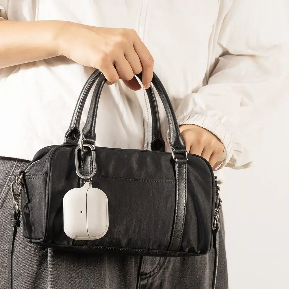 Turklāt futrālis ir aprīkots ar praktisku karabīni, lai paplašinātu iespēju klāstu - austiņas var piespraust pie auklas ar atslēgām vai pie bikšu jostas, pateicoties kam komplekta nomešana vai pazaudēšana kļūst gandrīz neiespējama.