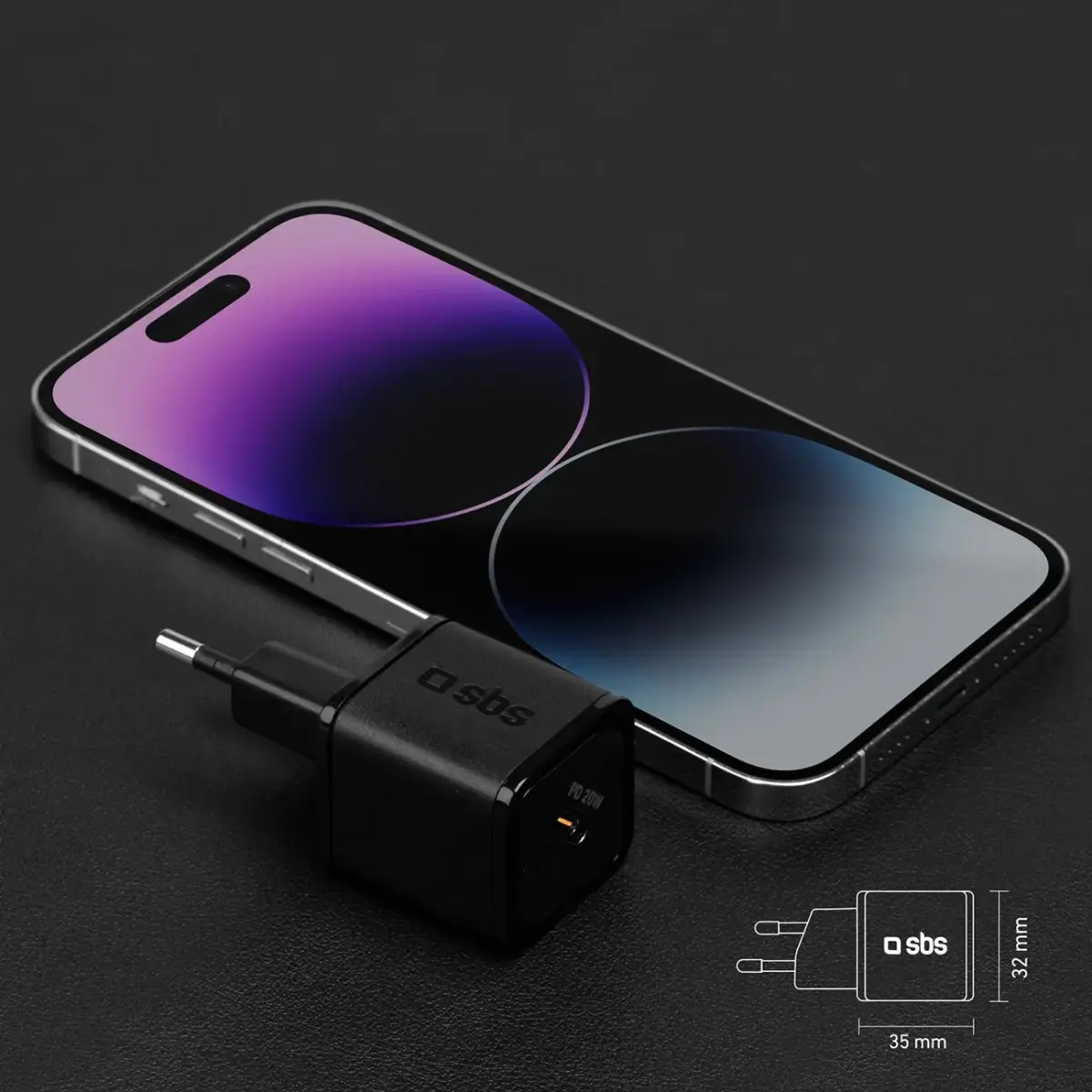 GaN baterijas lādētājs | 20W | PD | GaN | USB-C | melns