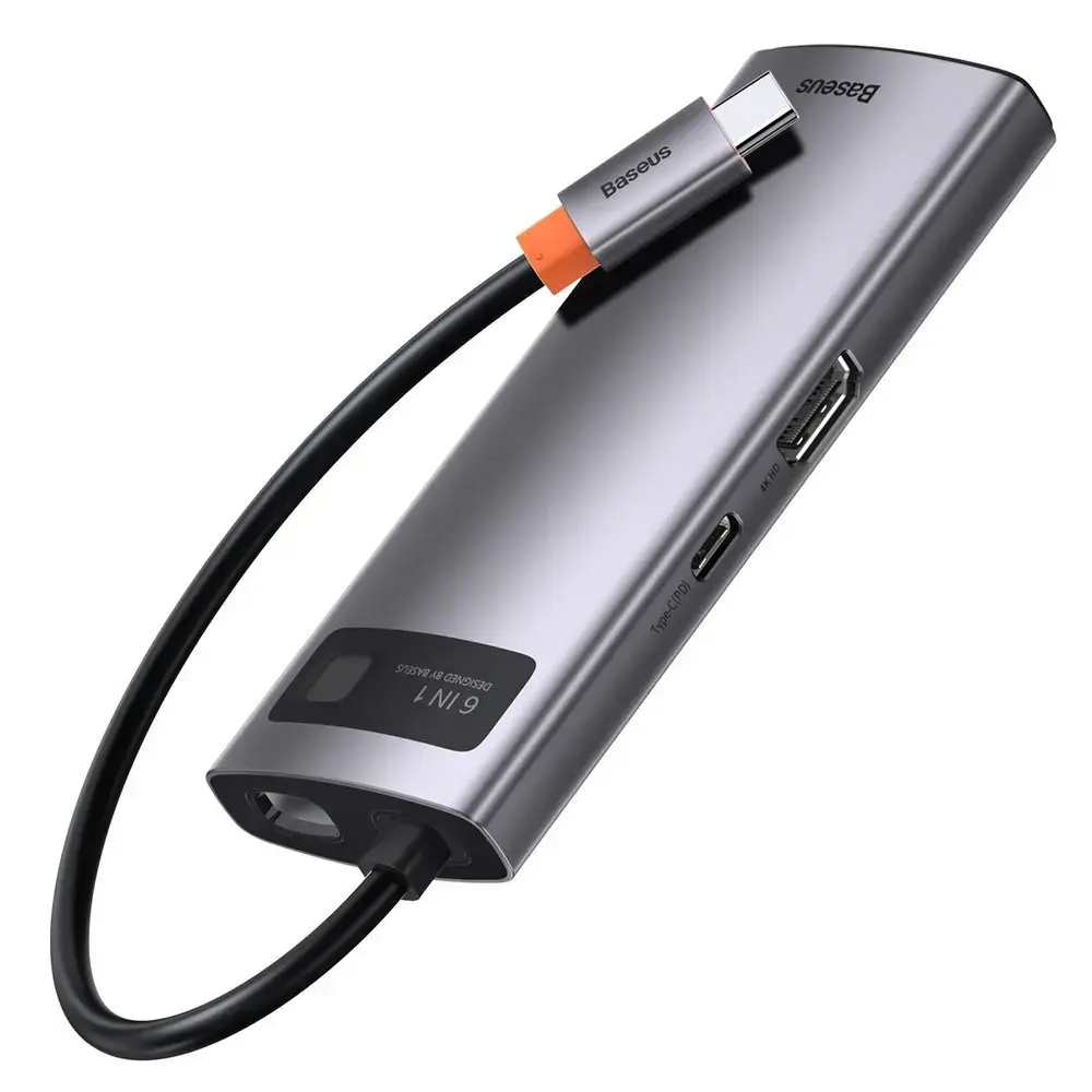 Baseus Metal Gleam 6in1 multifunctional HUB USB Typ C - USB Typ C Power Delivery 100 W / HDMI 4K 30 Hz / 3x USB 3.2 Gen 1 / RJ45 1 Gbps