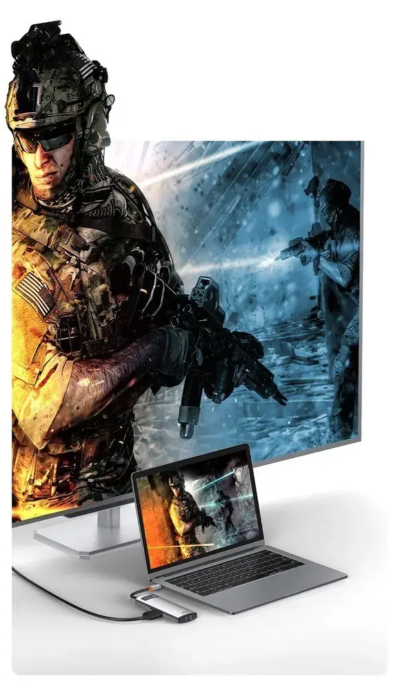 The HDMI connector transmits a clear and detailed image in 4K quality with a refresh rate of up to 30 Hz. Works in desktop extension or mirror mode. This allows you to connect a second monitor or projector and watch movies, play games or presentations on a larger screen.