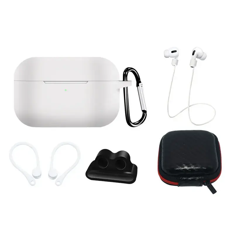 Fusion Komplekts silikona maciņš | auss āķis | kakla siksniņa | pulksteņa siksnas turētājs | karabīne Apple Airpods Pro 1 | 2 balts