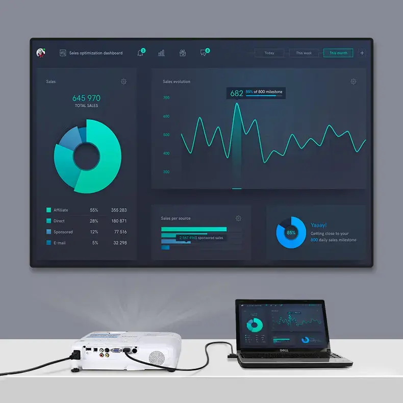 The product will prove itself in many applications. For example, you can use it to display photos from your camera on the big TV screen. Do you want to conduct an engaging audience presentation? Connect your laptop to the projector and show them interesting slides. The adapter also allows you to comfortably watch movies, TV series, and even concerts and sports events.