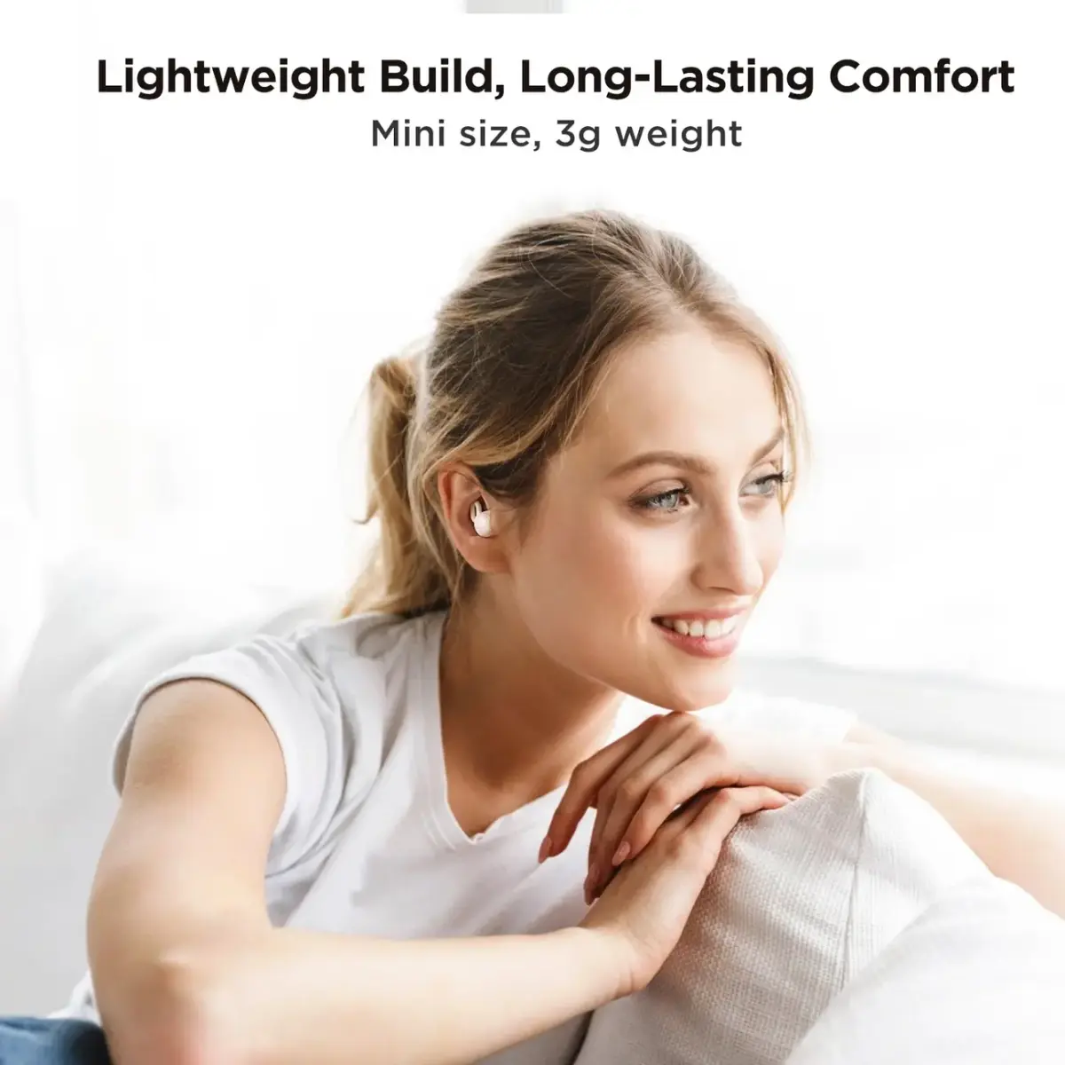 Discover the silence you need to rest and relax. These innovative TWS Joyroom JR-TS1 Cozydots Series headphones are designed to give you a good night's sleep thanks to unique features that allow you to enjoy a moment of silence anytime, anywhere. They can suppress external sounds up to 24 dB and ensure comfort of wearing all night long. The ultra-compact design and silicone ear cups ensure comfort even when sleeping on your side. A stable Bluetooth 5.3 connection allows you to listen to soothing music for up to 4 hours on a single charge.