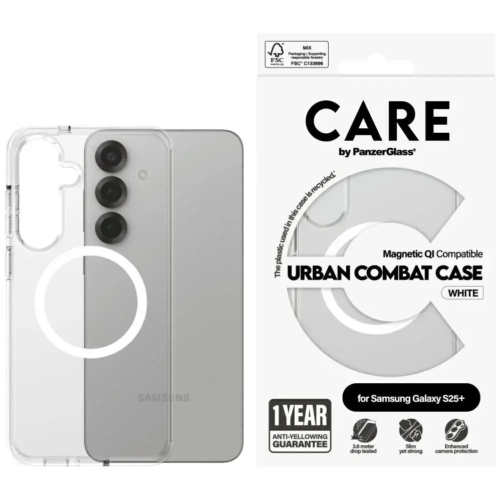 Etui CARE by PanzerGlass Flagship Urban Combat QI do Samsung Galaxy S25+ przezroczysty-biały