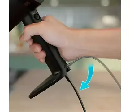 Kustīgs, elastīgs strāvas vads, kuru var pārvietot, lai maisīšanas laikā nodrošinātu maksimālu komfortu.