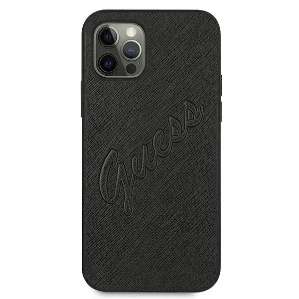 Guess Saffiano Vintage Script Case for iPhone 12 Pro Max 6.7" - Black