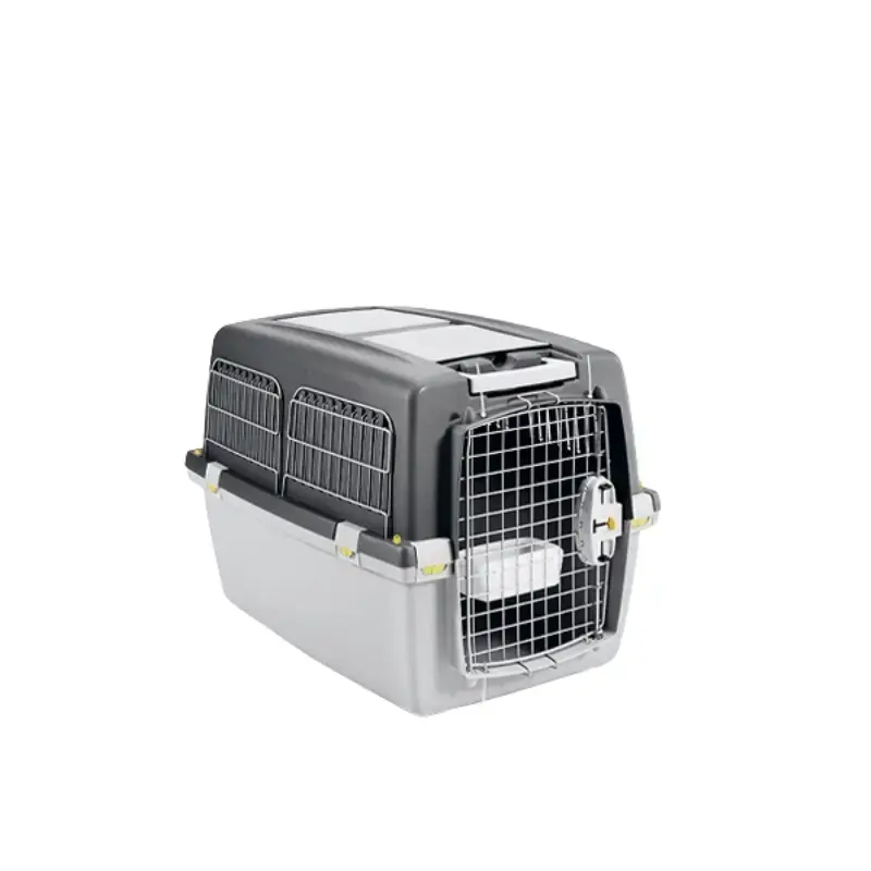 Praktisks transportēšanas būris, kas aprīkots ar pretspiediena svītrām un durvīm ar aizbīdni, lai mājdzīvnieks varētu droši transportēt. Ražots saskaņā ar IATA noteikumiem. Pieejams papildus 4 riteņu komplekts.