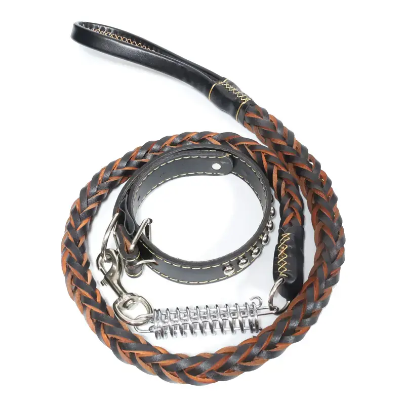 Ādas pavadas pītais, elastīgais dizains un atspere palīdz absorbēt dzīvnieka straujo kustību radīto triecienu, samazinot vilkšanas sajūtu. Grozāmā karabīne neļauj pavadai sagriezties un sapīties.