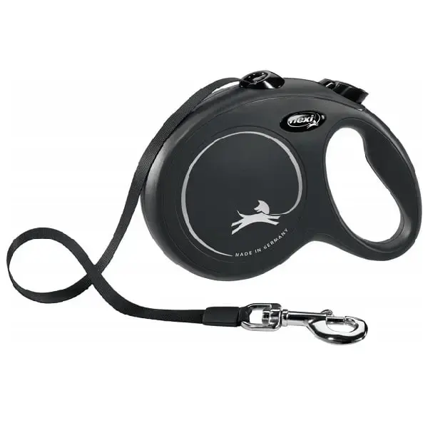 Inerces pavada suņiem - Trixie Flexi New Classic Tape Leashes. Hromēta aizdare, izturīga. Iespējams papildināt ar Vario System aksesuāriem - VARIO LED Lighting System un Multi Box. Krāsa: melna.