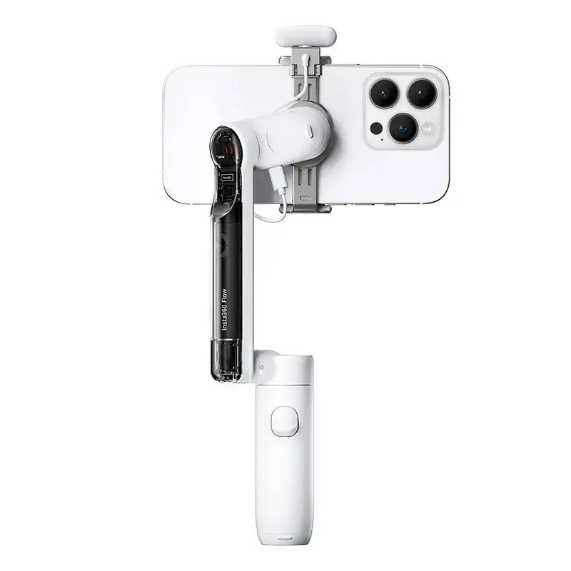 Insta360 Flow isn't just a stabiliser - this versatile device can also perform several other functions. The built-in tripod will make it easy for you to record vlogs or tutorials, and the cold shoe adapter allows you to mount additional accessories, such as a microphone. There's also a selfie stick with a maximum length of 215mm, so you can easily take the perfect selfie or group photo! Flow will also prove its worth as a powerbank - it even allows you to charge your phone while recording.