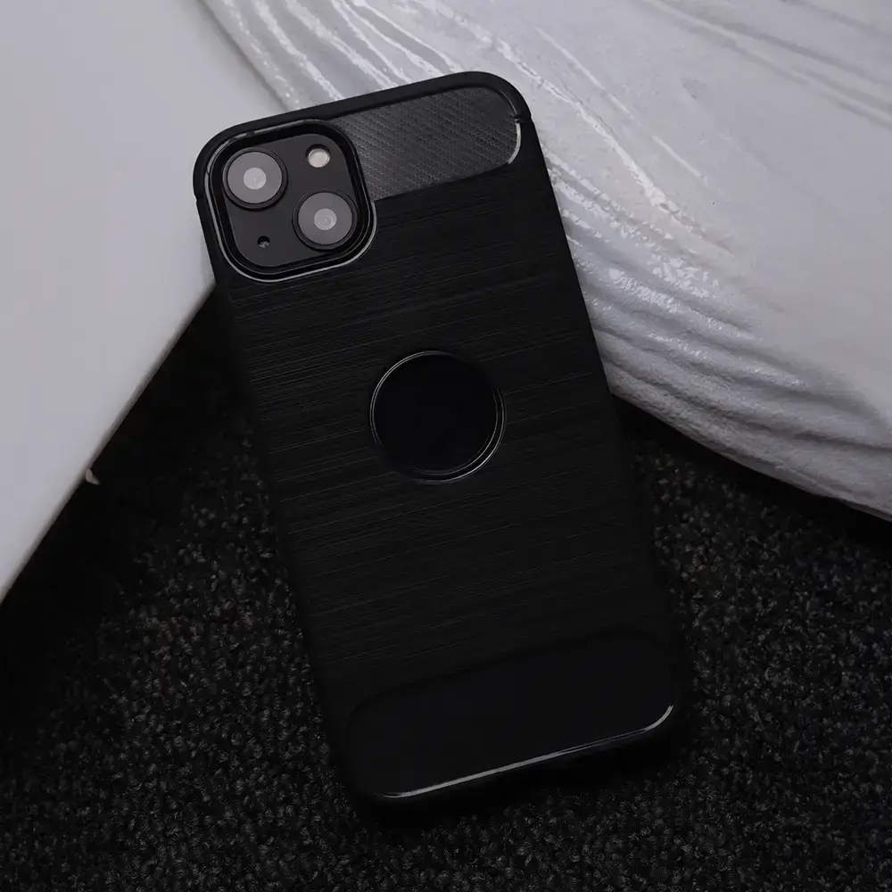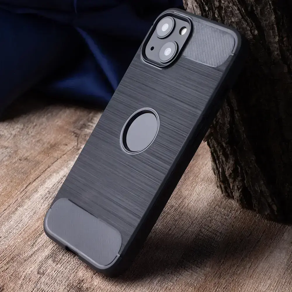 The product is made of TPU material with varying hardness. The edges of the cases have shock-absorbing properties, which is further complemented by the reinforced back. The matte finish is combined with panels featuring a pattern that resembles carbon fiber.