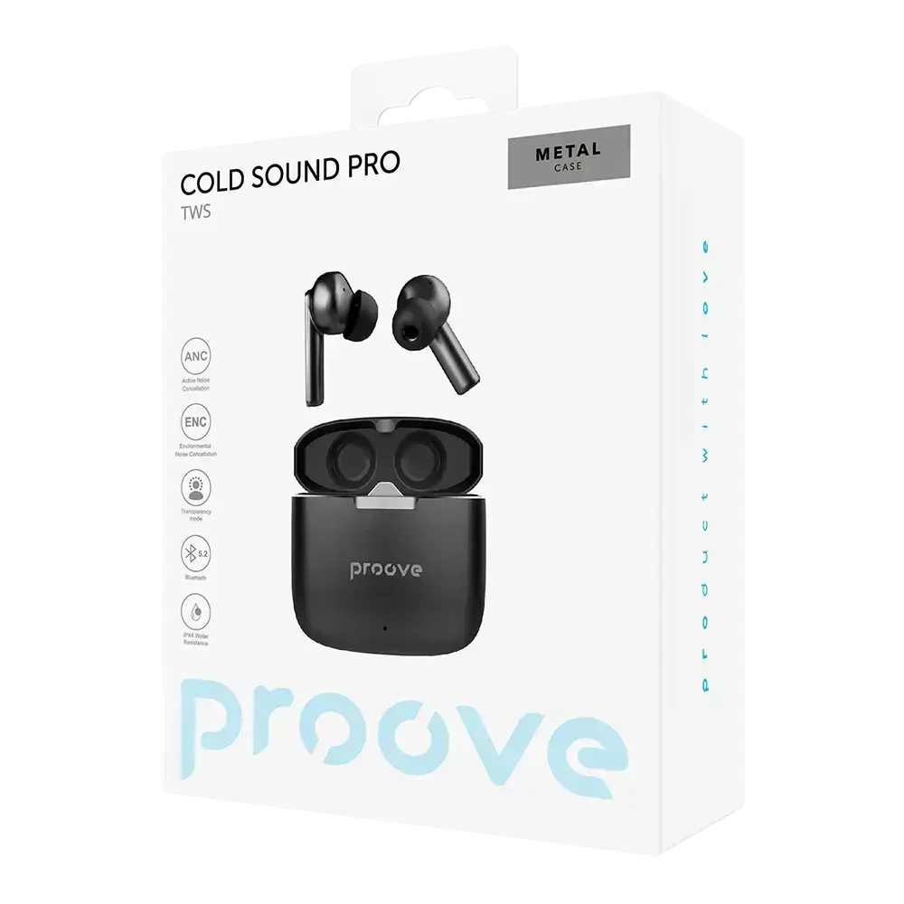 Immerse yourself in perfect sound with Proove Cold Sound Pro, wireless headphones with active noise cancellation (ANC) that eliminate unwanted surrounding sounds. Thanks to advanced audio technology, you'll hear every detail of your favorite tracks in crystal quality. The stylish black design and ergonomic shape guarantee comfort even during prolonged use. The efficient battery provides many hours of wireless operation, while intuitive controls make it easy to handle calls and music. Proove Cold Sound Pro – sound that envelops, comfort that lasts!