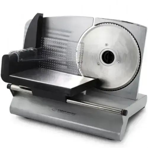 Metāla griezējs ar hroma-niķeļa pārklājumu ar plašu šķēles biezuma regulēšanu. Esperanza Mortadella griezējs ļauj sagriezt maizi, gaļu, sieru, salami, augļus un dārzeņus vienādās vienāda biezuma šķēlēs. Hroma-niķeļa pārklājums nodrošina ierīcei ilgu kalpošanas laiku un vieglu tīrīšanu. Ar lielu nerūsējošā tērauda asmeni var griezt ēdienu, kura diametrs ir 19 cm. Ierīces universālais dizains ļauj to pieskaņot jebkuras virtuves stilam.