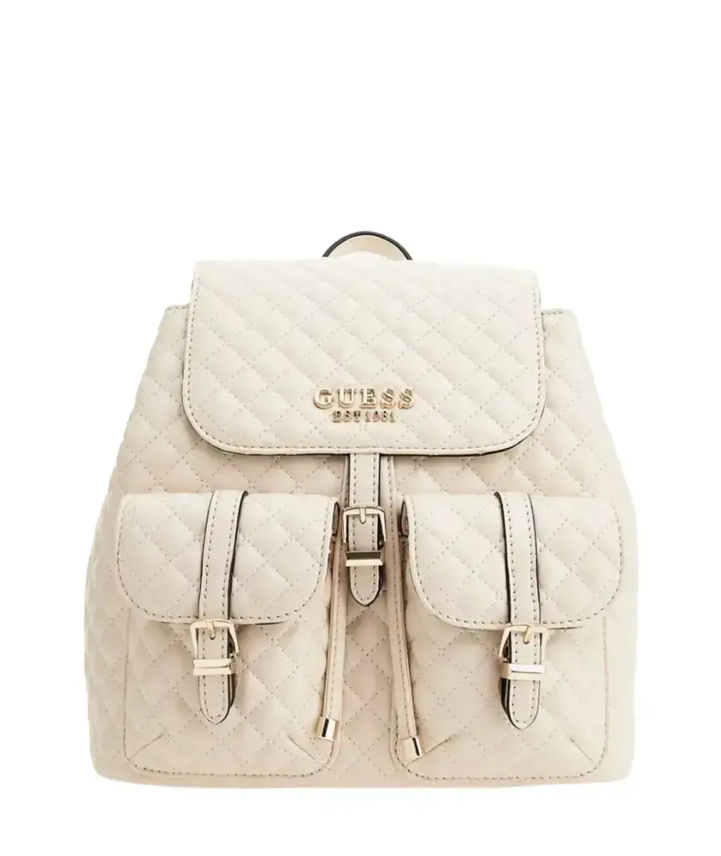 Guess, Adam Flap, Polyurethane, Textile Backpack, Stone, For Women