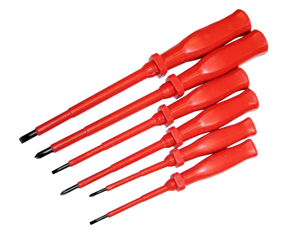 Izolētu skrūvgriežu komplekts ar magnētiskiem uzgaļiem. Piemēroti darbam ar spriegumu līdz 1000 V.