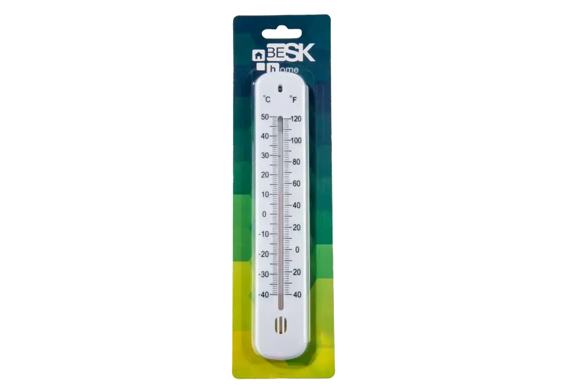 Plastmasas termometrs izmantošanai ārā. Temperatūras mērīšanas diapazons no -40° līdz +50°C. Termometra garums 210 mm.