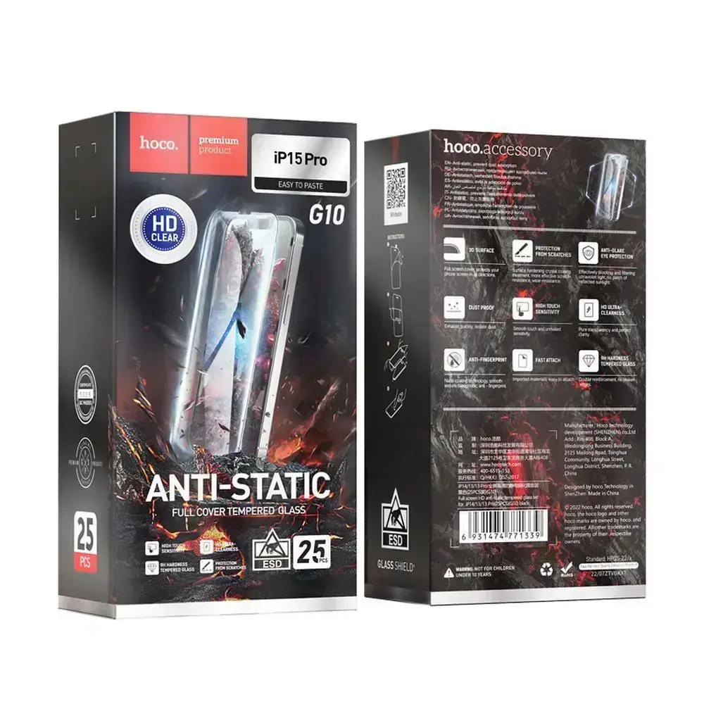 Tempered glass to iPhone 15 PRO Hoco HD Anti-static 25 pcs G10
