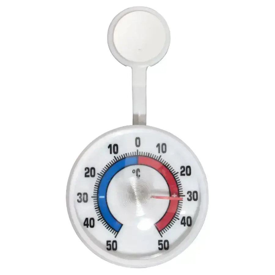 Plastmasas termometrs izmantošanai ārā. Temperatūras mērīšanas diapazons no -50° līdz +50°C. Termometra izmērs 70 mm.