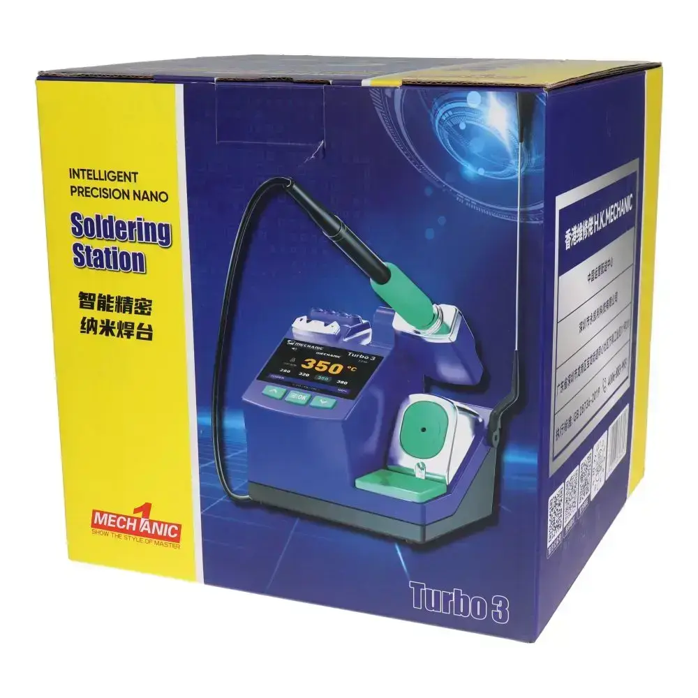 The TURBO 3's ergonomics are designed for intensive repair workshops. Each iron stand features an ultra-sensitive induction standby system, instantly protecting your tips from oxidation. The station includes shortcut buttons for your preferred temperatures and allows for precise software calibration to compensate for tip wear. Whether you are working on BGA reballing, FPC connector replacement, or invisible data bridges (jumpers) to the naked eye, the MECHANIC TURBO 3 offers the power and finesse needed to succeed in every operation on the first try.