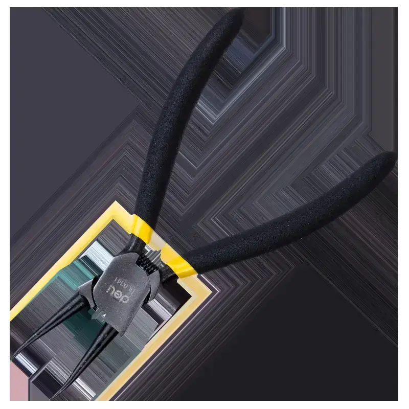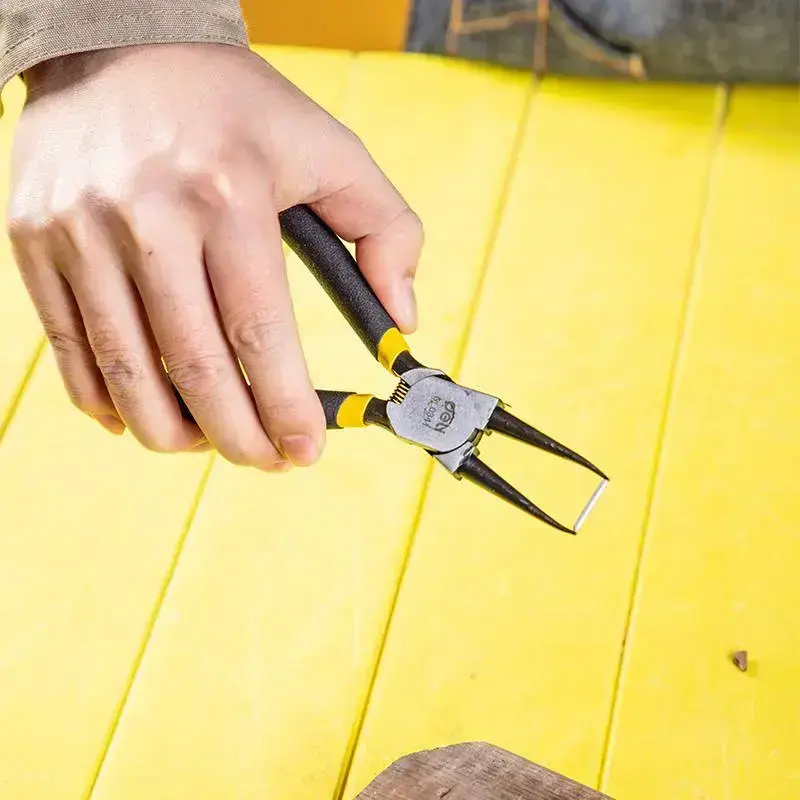 Brand Deli Name Straight Interior Circlip Pliers Model EDL0341 Size 7" Material 40CR steel Color Black and yellow Net weight 166g