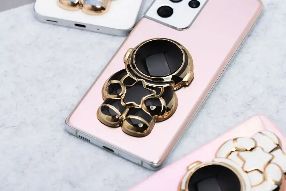 A small stand that allows you to comfortably hold your smartphone in your hand, while also acting as a practical stand.
