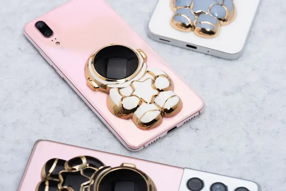 A small stand that allows you to comfortably hold your smartphone in your hand, while also acting as a practical stand.