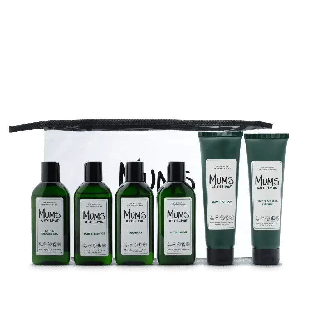 Starter Kit Set Mums With Love: Mums With Love, Hydrating, Body Lotion, 100 ml + Mums With Love, Hair Shampoo, For Cleansing, 100 ml + Mums With Love, Shower Gel, For All Skin Types, 100 ml + Mums With Love, Cleansing, Bath Oil, 100 ml + Happy Cheeks, Repairing, Cream, For Face, 100 ml + Mums With Love, Repairing, Cream, For Face, 100 ml + Mums With Love, Textile Bag, Toiletry, For Women