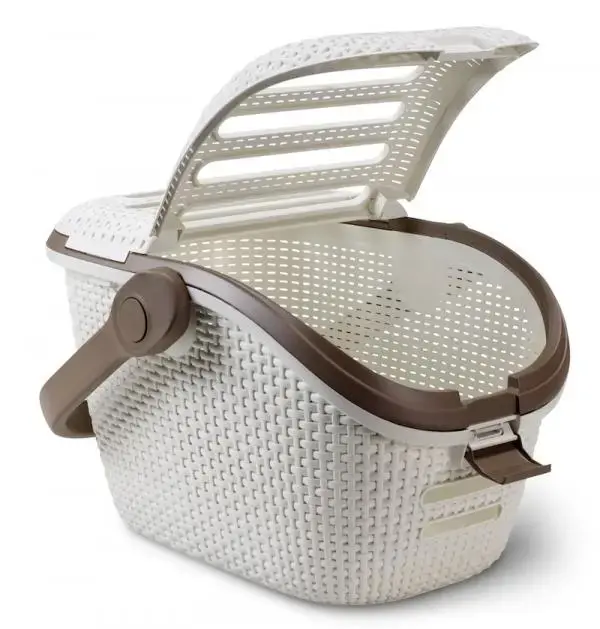 Basket/box for transporting or carrying pets. Convenient, handy, air-permeable.Modern design. The crate/basket is equipped with a convenient handle and lid, allowing the pet to be freely put in or taken out of the basket. Made of washable plastic, so the basket will always be clean and tidy.