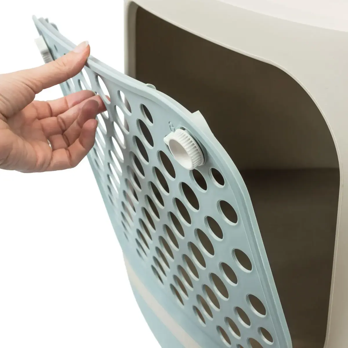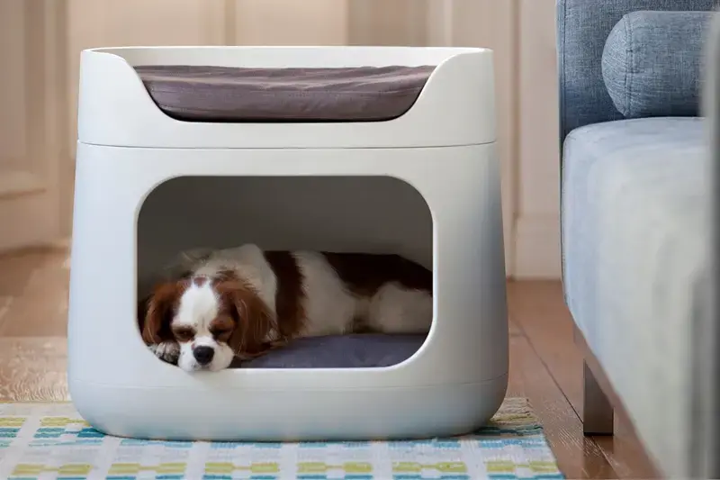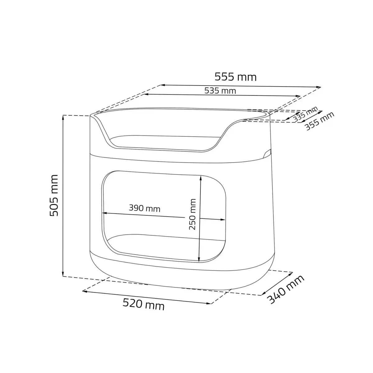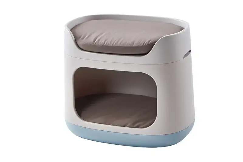 Pet crate for transport and sleeping. Two in one. The outside of the crate is made of plastic, the sleeping area is made of fabric with padding for comfort and convenience. By removing the top bunk, attaching the opening to the grate and holding the handle, you can carry the comfortable and multifunctional crate.