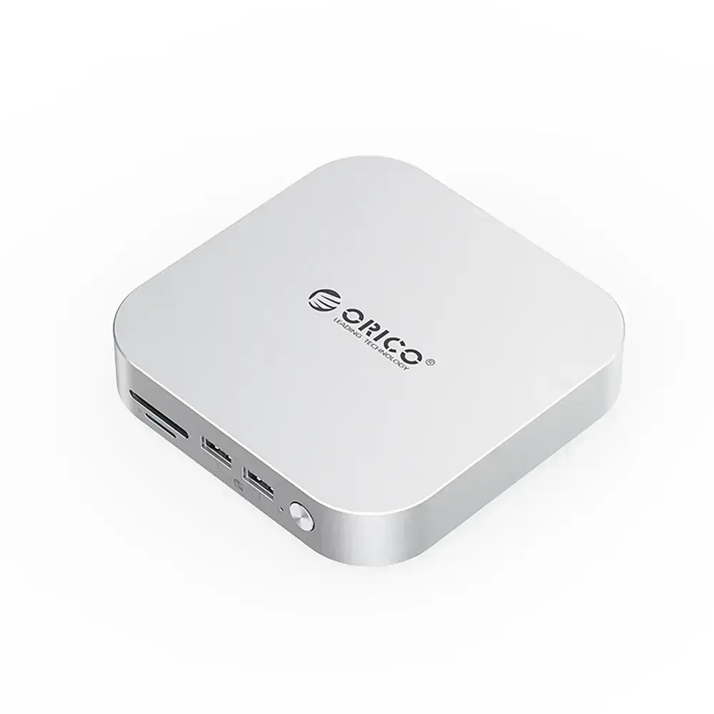 The Orico MiniLink 9-in-1 Docking Station is a powerful expansion center designed for the 2024 Mac mini and modern computers with a USB-C port. It combines a docking station with an M.2 SSD enclosure, allowing for increased ports and data storage. Its aluminum casing, active cooling, and well-thought-out port layout make the MiniLink ideal for office work, creative work, and handling large multimedia files.