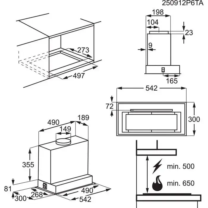 Electrolux tvaika nosūcējs (iebūv.), melns, 54 cm