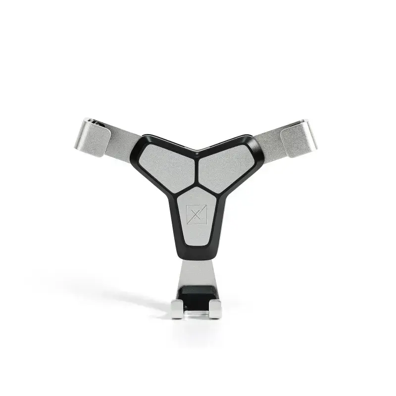 MX Iron gravity car mount for the air vent. Easy to use – the gadget does not require tedious fitting to the phone. Just place the device on it, and the jaws will clamp automatically. Shock-absorbing design – the triangular construction guarantees stability even when driving on very uneven surfaces. Secure mounting – the clamping strap is finished with an additional hook, which ensures the mount practically cannot fall out of the vent.