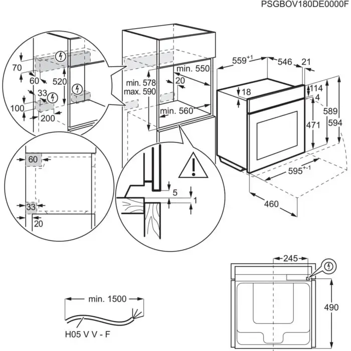 Iebūvēšanas izmēri AxPxD, mm: 590x560x550