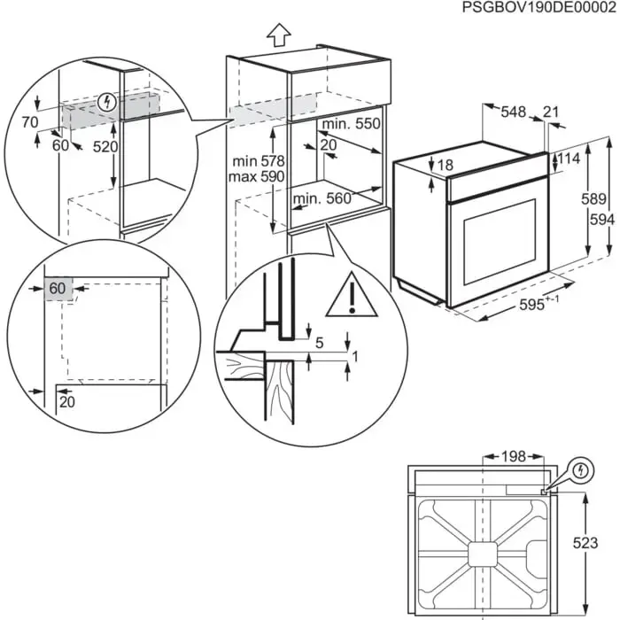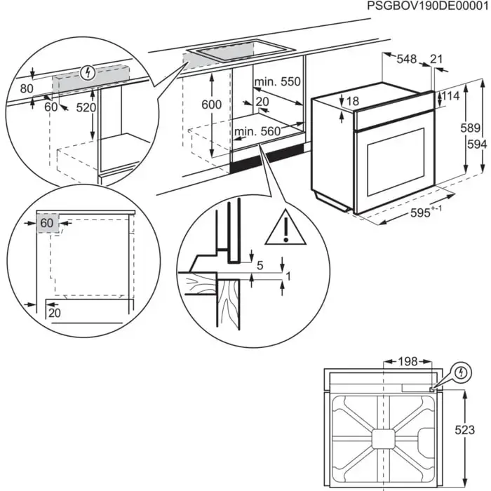 Iebūvēšanas izmēri AxPxD, mm: 590x560x550