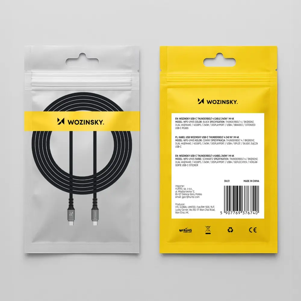 Wozinsky WPS-UY415S USB-C Thunderbolt 4 Cable 240W 1.5m 4K - Black