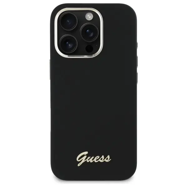 Guess GUHCP16LSMBSLK iPhone 16 Pro 6.3" black hardcase Silicone Script Metal Logo & Frame