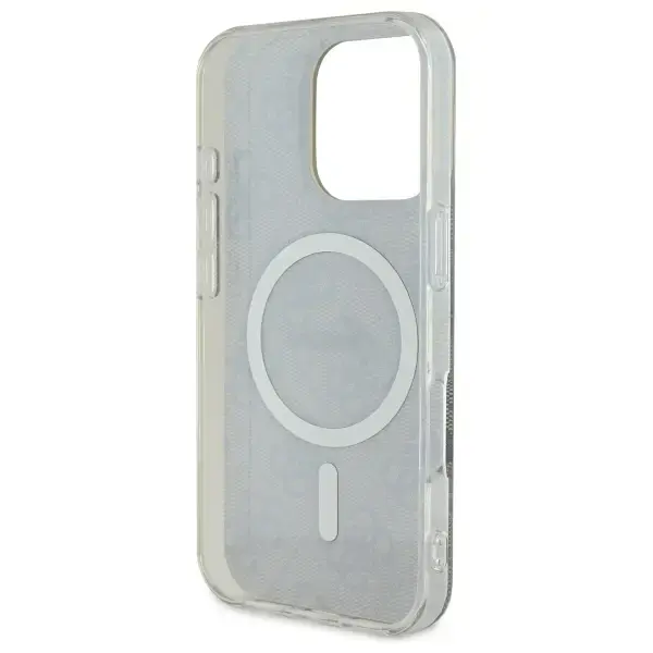 The case stands out with exceptional elegance, characterized by refined details such as a gold frame around the camera and a stylish gold MagSafe ring. The high-quality 4G print, an icon of Guess style, gives the case a classic, timeless appearance. Inside the magnetic ring, the Guess logo is subtly integrated, perfectly harmonizing with the case's color scheme, creating a harmonious and cohesive whole.