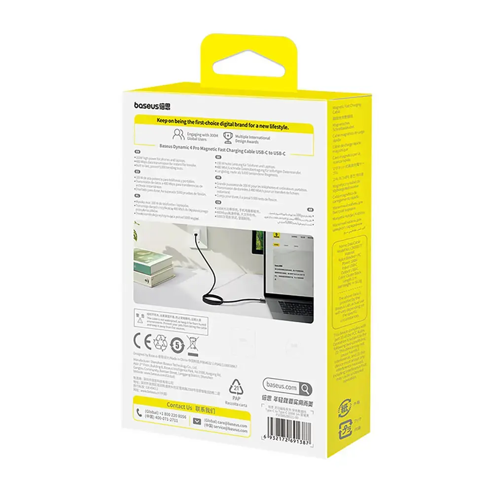 - Package contents: Baseus Dynamic 4 Pro Fast USB-C - USB-C 100W cable 1 m