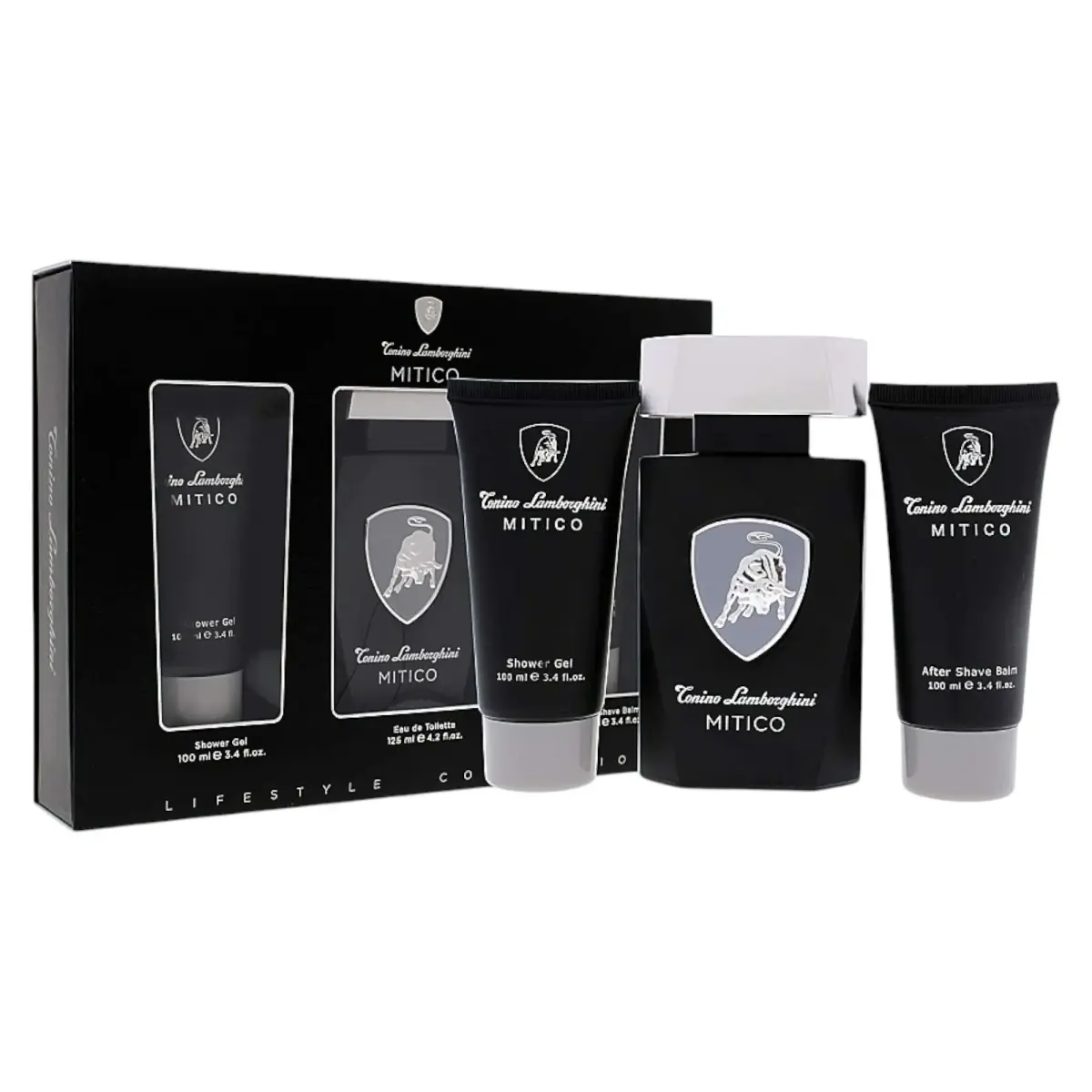 Set Tonino Lamborghini: Mitico, Eau De Toilette, For Men, 125 ml + Mitico, Hydration, Shower Gel, All Skin Types, 100 ml + Mitico, Hydrating, After-Shave Balm, 100 ml