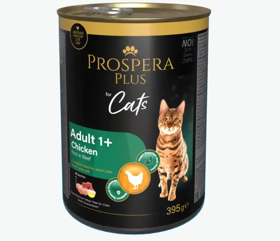 Kaķu konservi – Prospera Plus Cat, Meat Paté Adult 1+, Chicken with Beef, 395 g