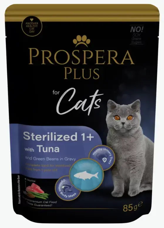 Mitrā barība kaķiem - Prospera Plus, Cat Pouch Sterilized 1+, Tuna and Beans, 85 g