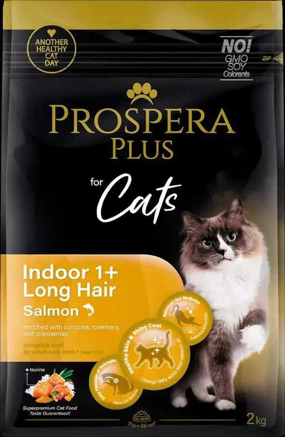 Barība kaķiem – Prospera Plus Indoor 1+ Salmon Long Hair, 2 kg