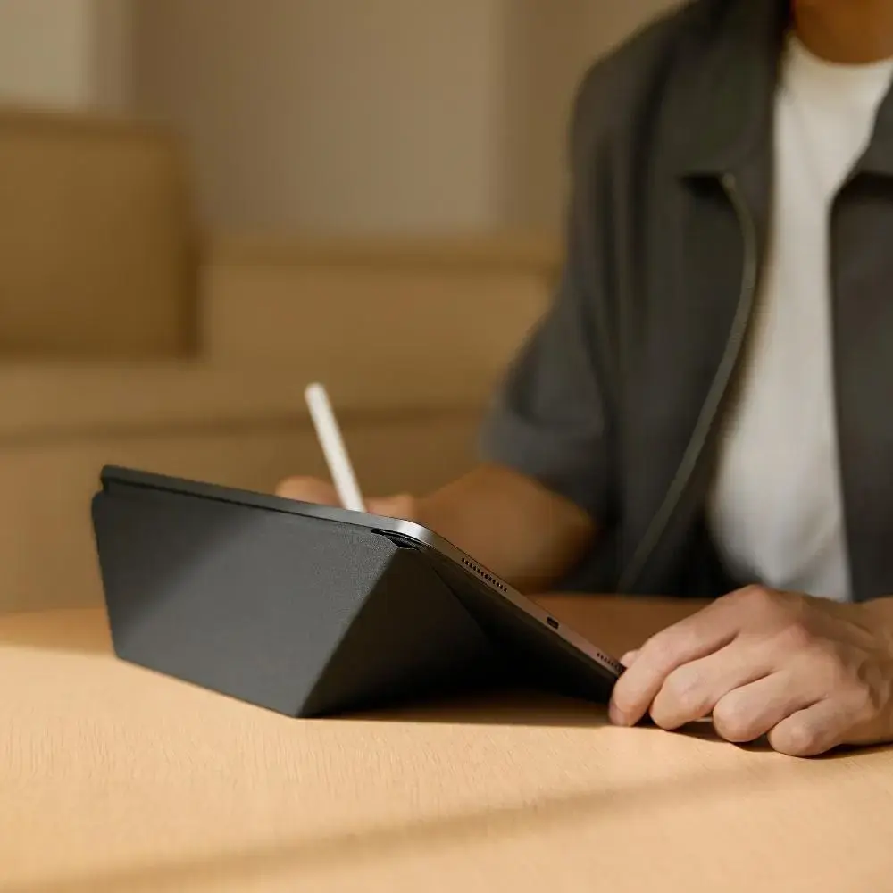 MagEZ Folio 2 stands out with its extremely lightweight and slim structure, perfectly protecting your device without adding bulk. Made from a fiberglass composite plate, it combines durability and elegance, offering solid protection for everyday use. The case does not weigh down your iPad, while effectively protecting it from scratches, scuffs, and minor impacts. It’s the ideal combination of lightness, durability, and modern design — perfect for both work and travel.