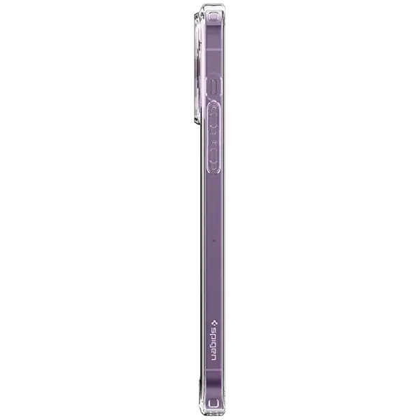 Ultra Hybrid od firmy Spigen to etui jednoczęściowe. Składa się z przezroczystej warstwy wykonanej z poliwęglanu oplatającej krawędzie i tył telefonu oraz wytrzymałej gumowej ramki wokół, wykonanej z termoplastycznego, miękkiego materiału, który dodatkowo chroni urządzenie przed upadkami. Case jest idealnie dopasowany do Apple iPhone 14 Pro Max i nie ogranicza możliwości ładowania bezprzewodowego.