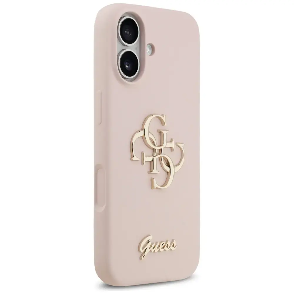 Elegant Guess case from the Silicone Big 4G Script collection featuring an elegant, recognizable 4G pattern signed with a golden GUESS logo.