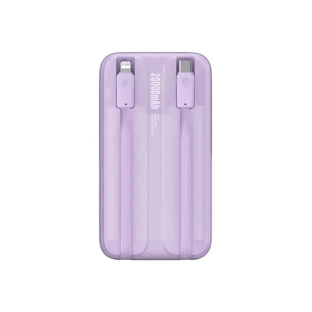 Baseus Comet Series Powerbank with a capacity of 20,000 mAh and a power of 22.5 W with built-in USB-C and Lightning cables - purple