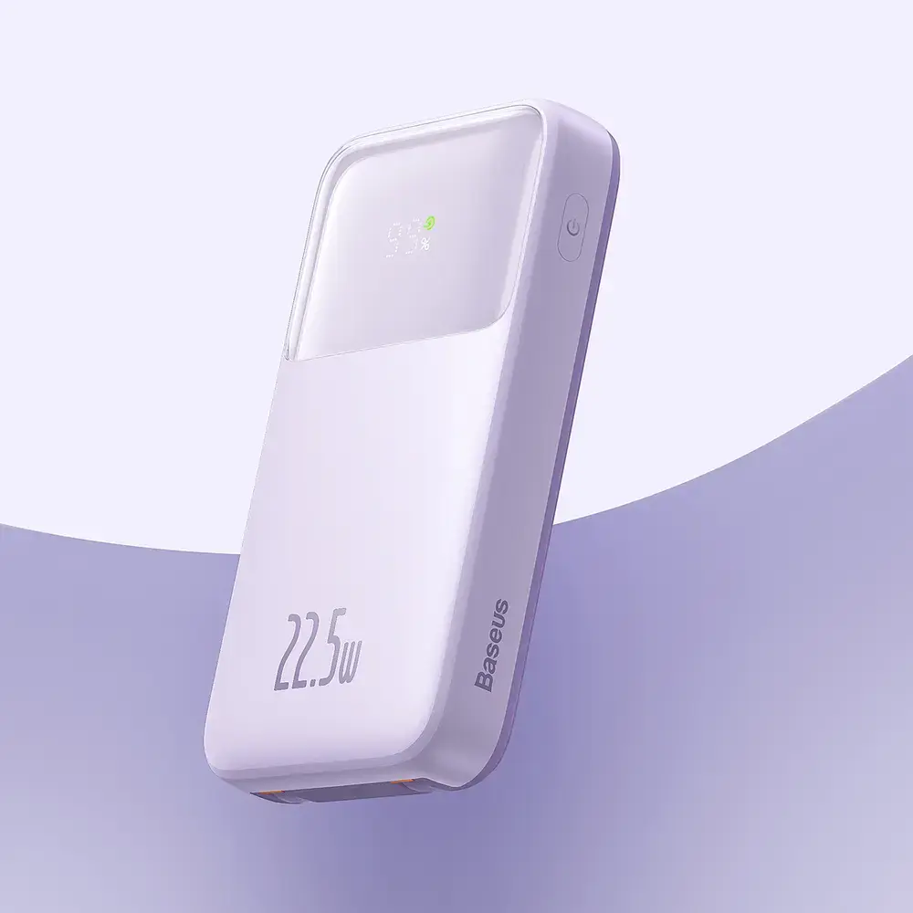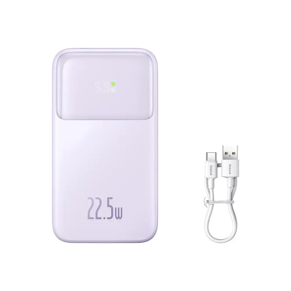 Baseus Comet Series stands out from other power banks not only due to its 20,000 mAh capacity and 22.5 W power, but also thanks to its unique design and built-in USB-C and Lightning cables. The powerbank combines high functionality with unique style. The digital display and modern design make the Baseus Comet Series a great choice for anyone looking for a reliable source of energy.