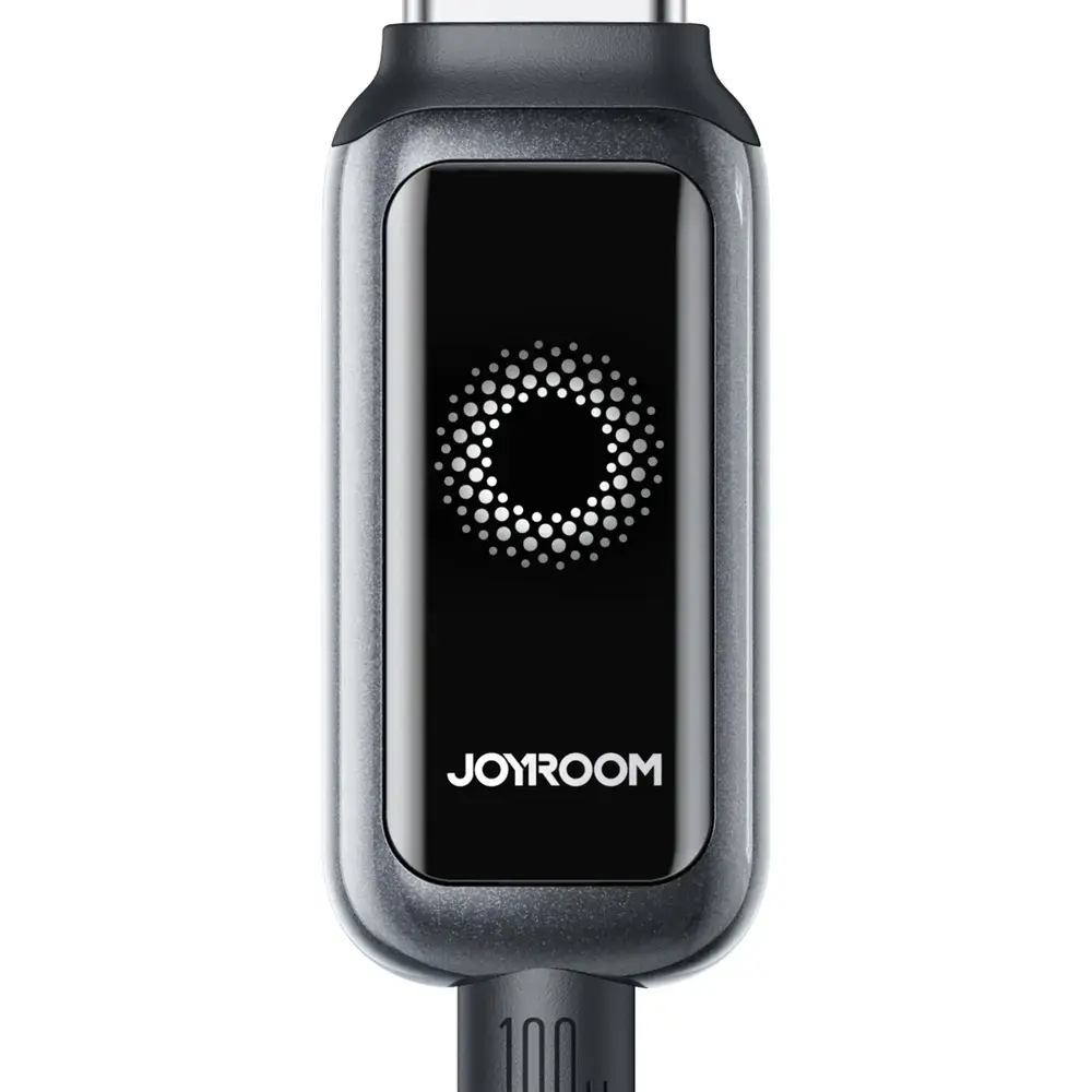 The Joyroom S-A55 StarFlight 100W USB-C to USB-C Cable is a high-performance, durable, and intelligent cable designed for ultra-fast charging of USB-C devices. Supporting up to 100W of power, it's suitable for smartphones, tablets, ultrabooks, and power banks. An automatic power-off feature after a full charge protects the battery, while intelligent voltage and current regulation stabilizes power flow and prevents overheating. An LED indicator shows the current charging mode. Braided nylon, zinc alloy metal tips, and a tinned copper core provide exceptional durability and resistance to heavy use.