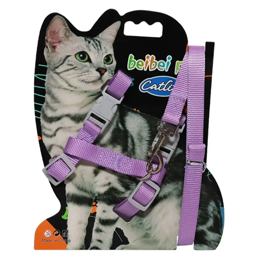 Violetā krūšu siksna kaķiem ar pavadu ir ērts un drošs komplekts pastaigām, kas nodrošina gan komfortu, gan kontroli kaķa ikdienas aktivitātēs. Regulējamās siksnas ļauj pielāgot krūšu siksnu kaķa ķermeņa izmēram, nodrošinot ērtu piegulšanu un drošu fiksāciju bez spiediena uz kakla. Izturīgā sprādze un metāla karabīne nodrošina drošu savienojumu ar pavadu, savukārt 120 cm garā pavada dod pietiekami daudz brīvības, lai kaķis varētu kustēties dabiskā ritmā. Siksniņu platums 1.5 cm, pavadas garums 120 cm.